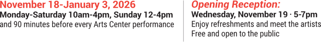 Gallery of Gifts will be open November 18–January 3. The public is invited to an opening reception on Wednesday, November 19, 5–7pm. The exhibit and reception are free and open to the public.