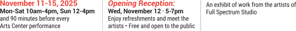 Bringing together vibrant creativity and fearless experimentation, Full Spectrum Studio’s exhibition Art Beyond Limitations & Expectations (ABLE) celebrates the work of Lowcountry artists with disabilities. On view November 11–15, 2025, this group show highlights the bold individuality of each artist, offering works that range from whimsical ceramics and joyful abstractions to expressive mixed media pieces. Collectively, the exhibition invites audiences to see beyond disability and into the full spectrum of artistic possibility.