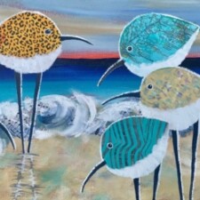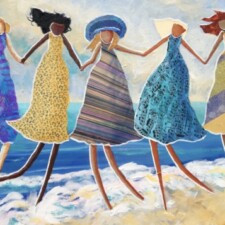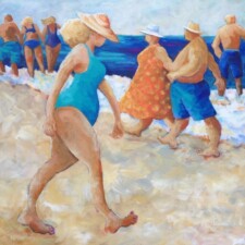 NANCY PATRICK CARNEY’S imaginatively stylized original paintings feature city-sea-and-land-scapes and the diversity of people who live in them. She works from Gallery G South, her home studio in Bluffton, SC. Her images are colorful, quirky, playful expressions of 21st century life: beach scenes, bus stops, musicians, men and women and children at work and play. With an emphasis on design and expressive color, Carney’s paintings in watercolor, oil, acrylic, collage and mixed media give visual form to the vitality and energy of modern life.