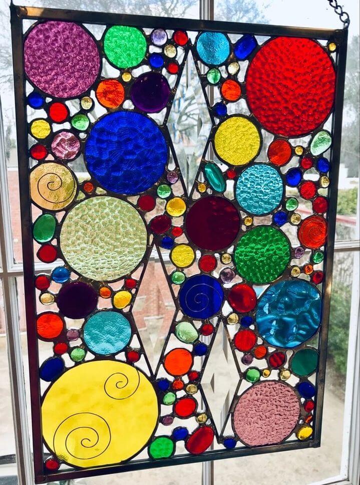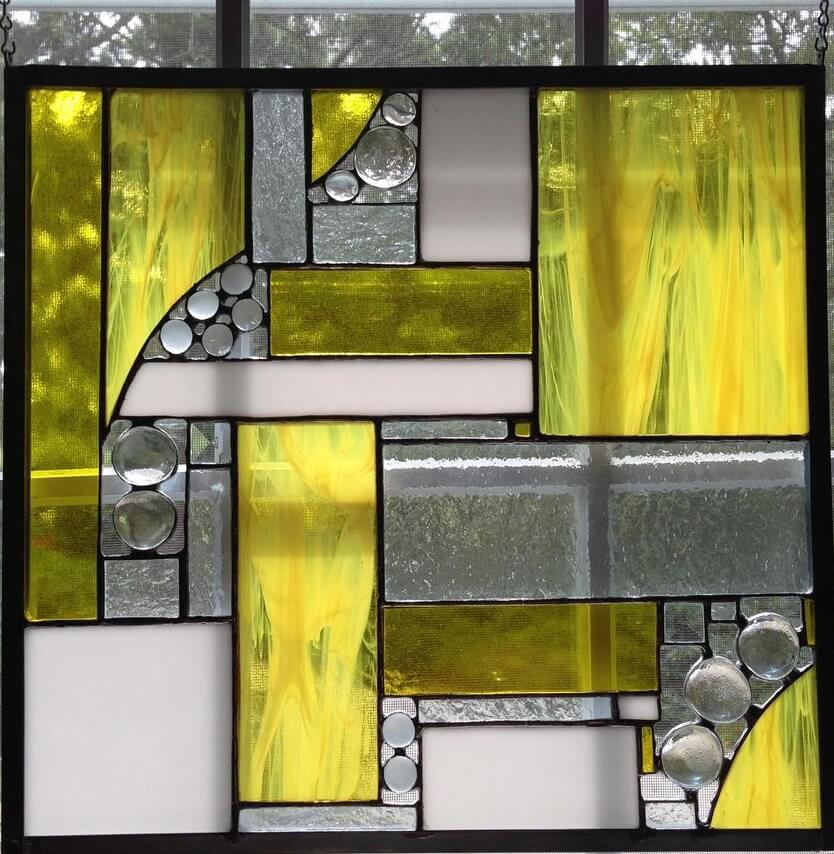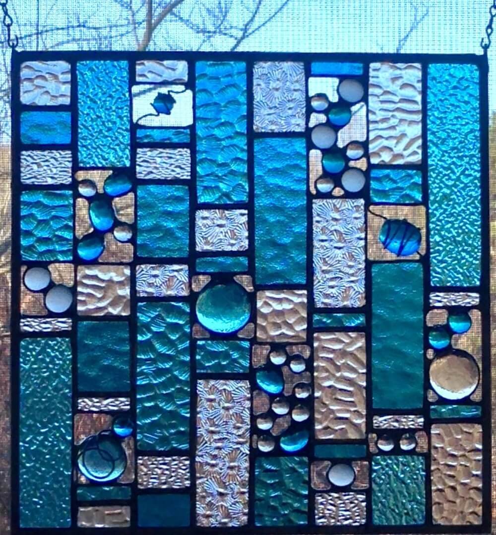 Cynthia designs and handcrafts each piece she creates using the Tiffany Copper Foil Method. Some of her work is traditional but most are non-traditional in its elements, modern design, and construction. Cynthia rarely uses a pattern, but instead, draws out an original design on paper, pulls the types and colors of glass she wants to use, and then, as she creates a piece, she will sometimes change the design or glass so that each piece is truly one of a kind. Cynthia tries to concentrate her time in the studio on work that is more challenging and artistic so that it is considered fine art rather than craft.