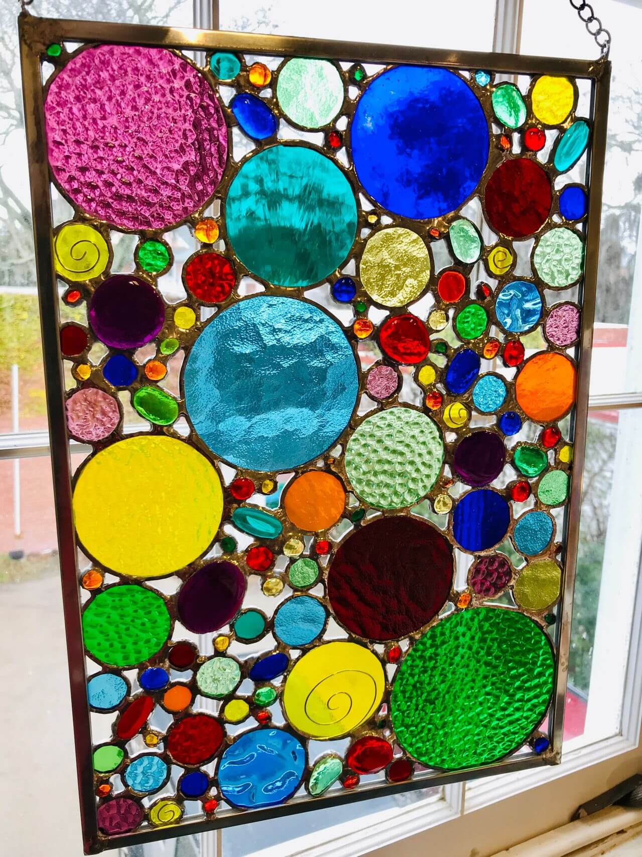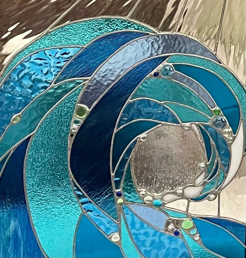 Over the years, Cynthia has taken classes in many other forms of glass, including glassblowing, fusing, flameworking, glass sculpture, etching, sandblasting, and also wire working, which she uses in some of her stained-glass pieces. These classes have been at Diablo but also at Snow Farm, The New England Craft Program, Whittemore-Durgin Glass and at the Studios at the Corning Museum. Continuing to learn more about the medium of glass has not only added to her own work but also given Cynthia a greater appreciation of the work of other glass artists.