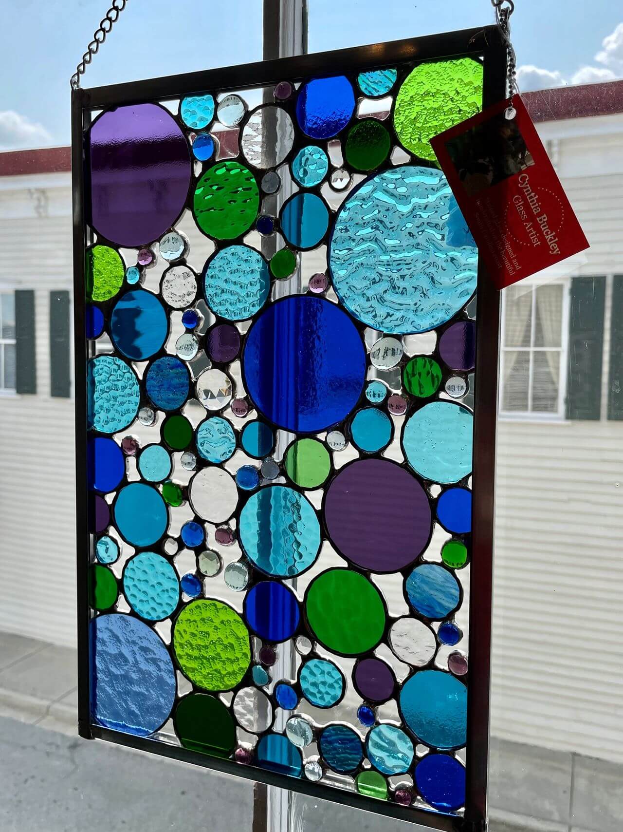 CYNTHIA BUCKLEY is a Stained Glass Artist. Ever since Cynthia was a child, she’s loved to draw and paint, and, as an adult, she started to collect antique glass. Combining her love for art and glass took Cynthia to the Diablo Glass School in Boston, which is affiliated with the Museum of Fine Arts and Massachusetts College of Art. After taking private classes at Diablo in beginning and then advanced stained glass, Cynthia started working with stained glass and set up her own private studio in Cape Cod.